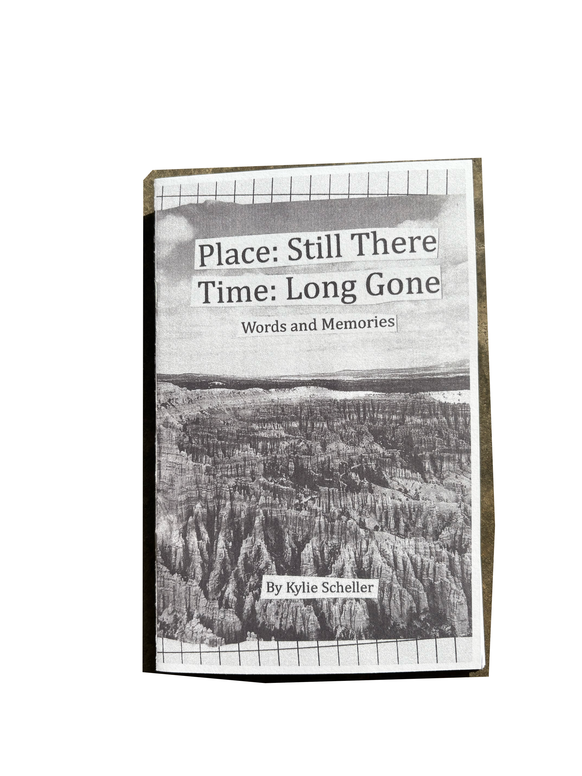 The title of this conceptual zine is Place: Still There Time: Long Gone, and a fitting subtitle would be No Regreso, or I Am Never Coming Back. The memories held within these pages have reached their final resting place. This zine is the urn in which their ashes will remain - remembered, but no longer alive.